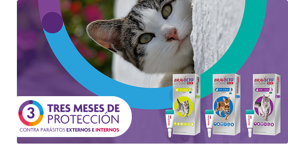 Bravecto® Plus para gatos es un tratamiento parásitos externos e internos. Esto significa que protege a tu gato contra parásitos que viven tanto en su piel como en su cuerpo.